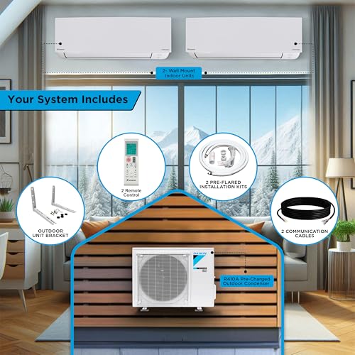 Daikin 2-Zone 24000 BTU Mini Split AC Heat Pump with Install Kit