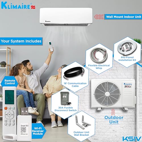 Beat the heat and stay cozy with Klimaire’s powerful 18,000 BTU mini-split system. Energy-efficient 19 SEER2 rating, easy installation, and complete kit make cooling and heating your space a breeze.