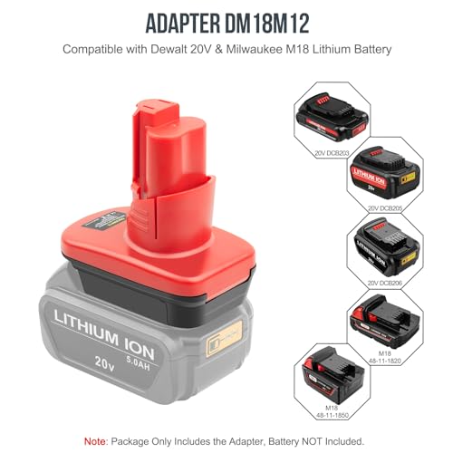 • Compatibility: DeWalt 20V, Milwaukee M18 to M12 12V