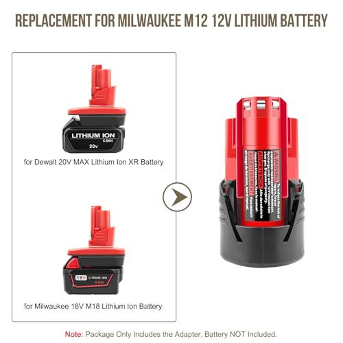 Here’s a revised, SEO-friendly product title: M12 Battery Adapter | Convert DeWalt 20V & Milwaukee M18 to M12 Tools