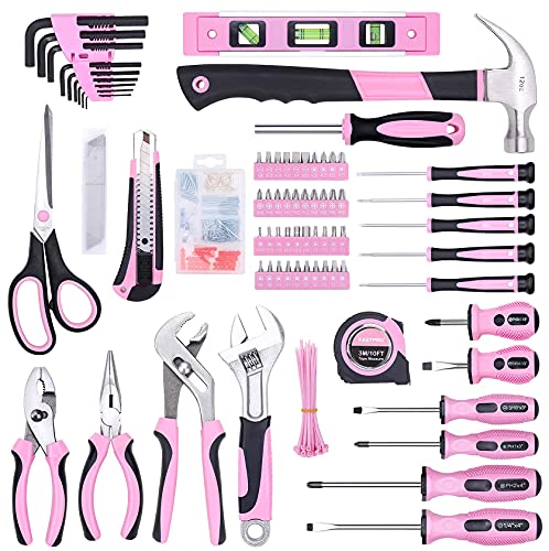 Pink 220-Piece Home Repair Tool Kit with Wide Mouth Storage Bag