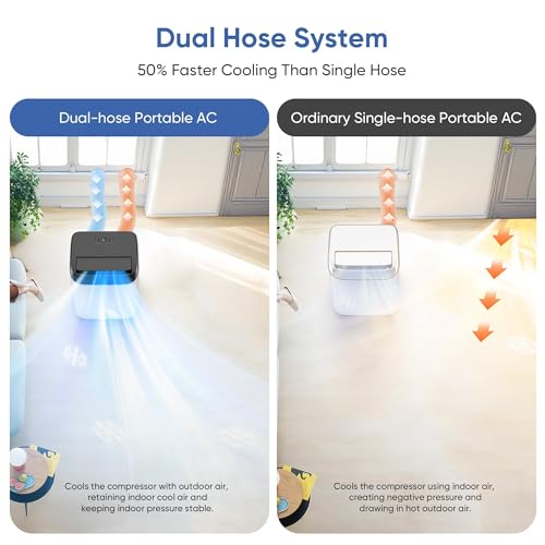 Beat the heat with this powerful 16,000 BTU Inverter Portable AC! Cools up to 800 sq.ft, features quiet 45dB sleep mode, dual hose design, and built-in dehumidifier for ultimate comfort and energy efficiency.