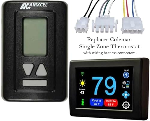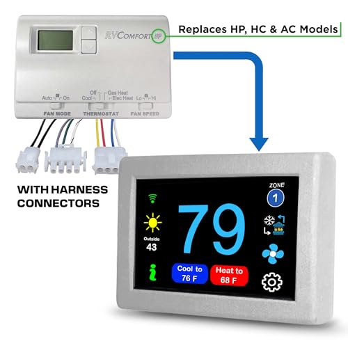 Control your RV climate from anywhere with WiFi-enabled touch screen thermostat. Programmable comfort with Bluetooth connectivity and seamless Coleman HVAC integration for year-round temperature management on the road.