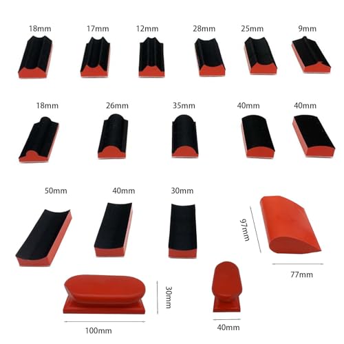 - 16 Interchangeable Sanding Blocks: Includes flat blocks in multiple sizes, radius blocks (convex and concave), pointed detail blocks, and contoured profiles for complex shapes—eliminates the need to fold sandpaper around improvised tools